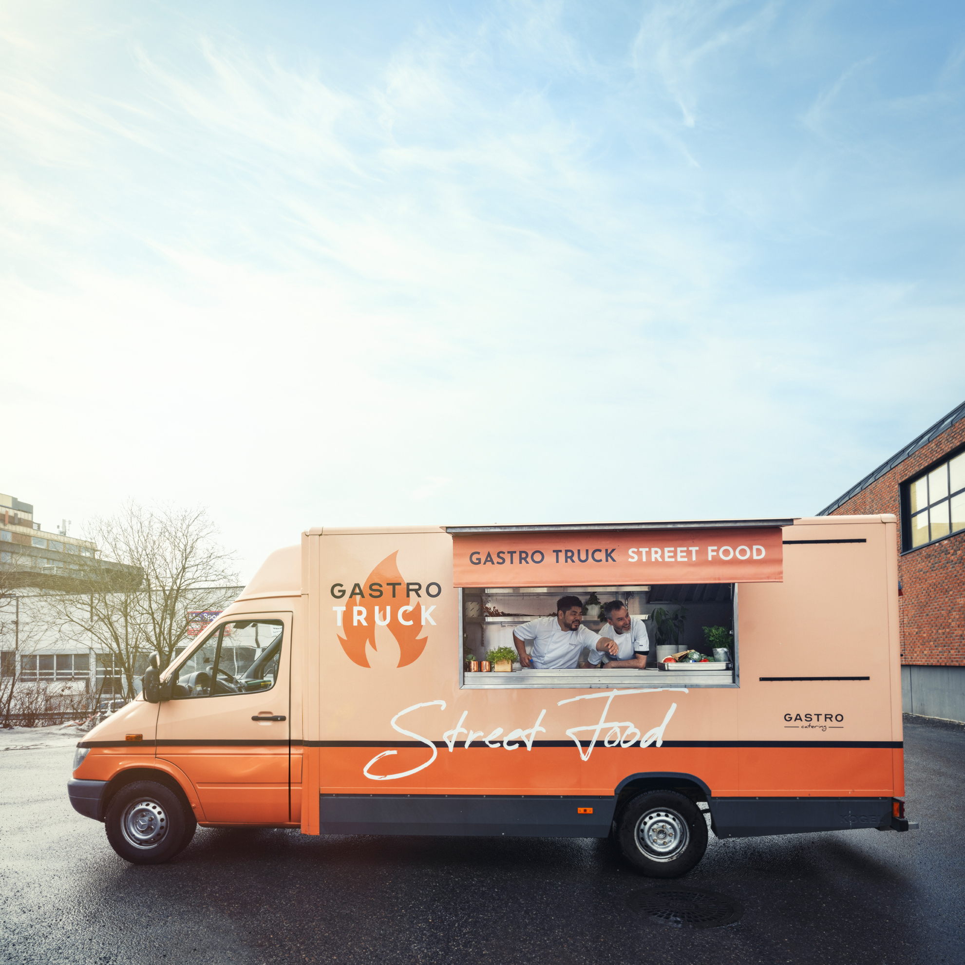 Vår Gastro Truck er en Mercedes-Benz Sprinter 308CDI modell og veier ca. 3,3 tonn. Lengde er 628,5 cm, bredde er 188,6 cm og høyde er ca. 3 m.