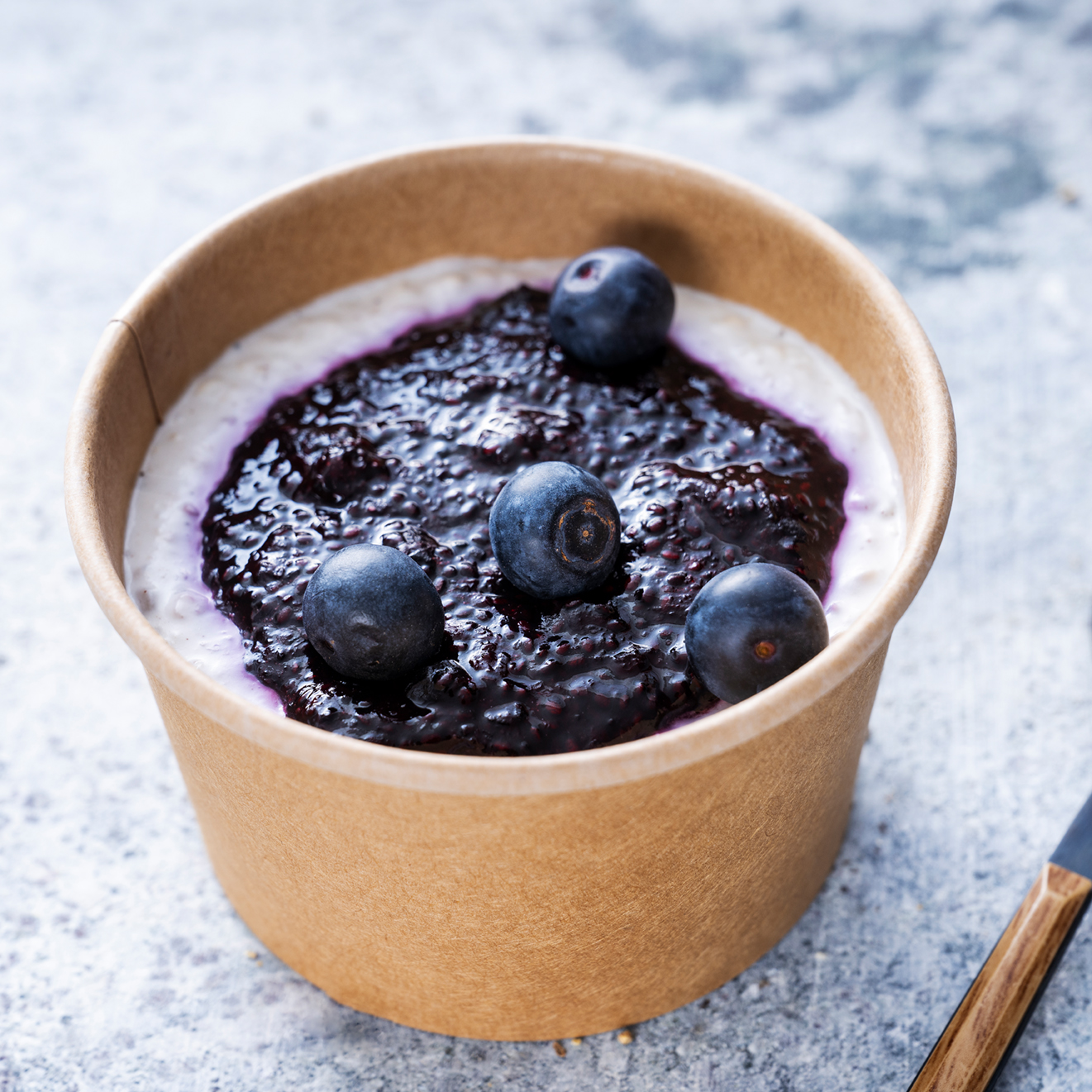 Havregryn, agave, kokosmelk, kanel, kardemomme, blåbær, chiafrø